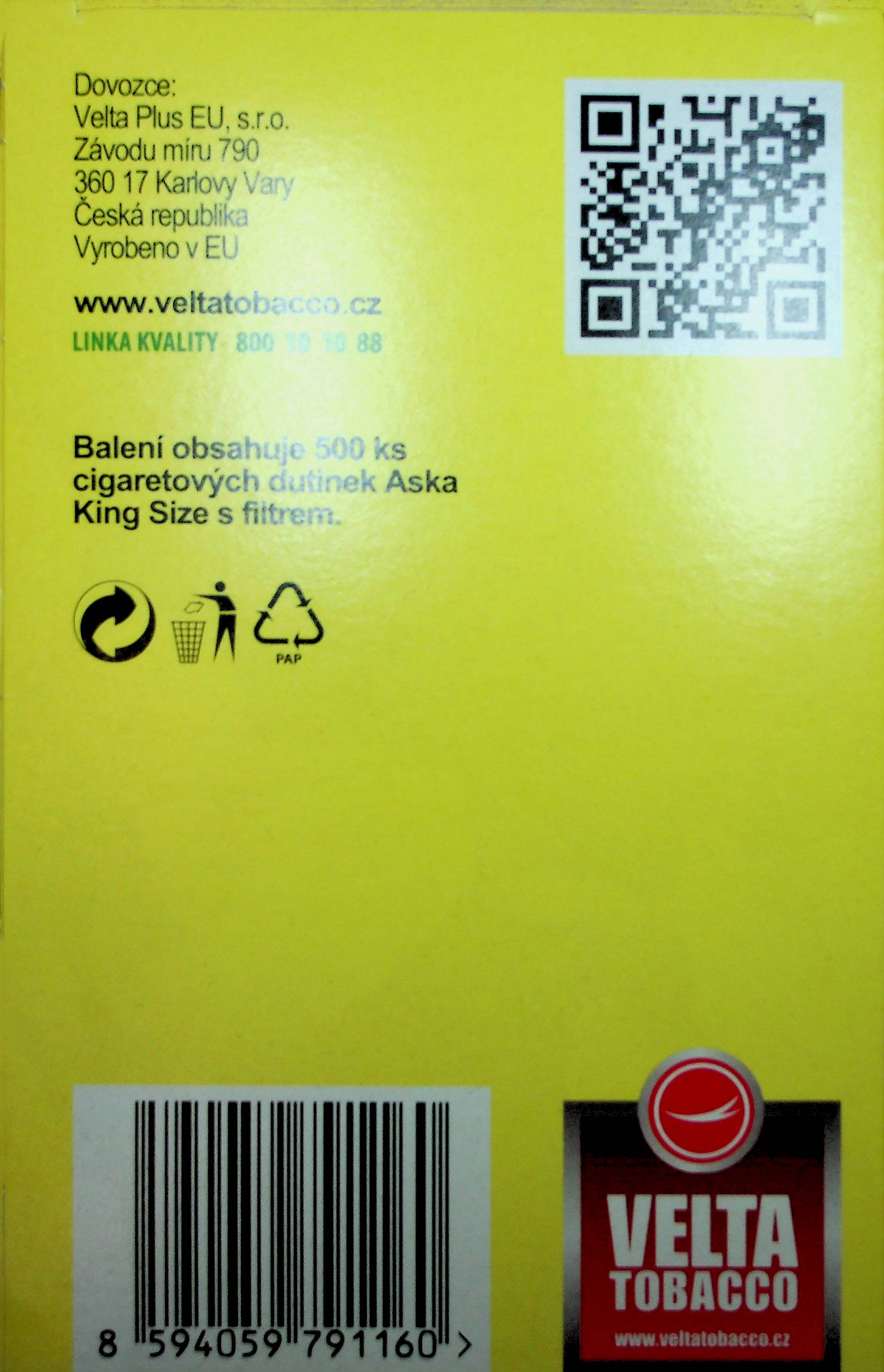 Značka Aska přináší kvalitní tabákové výrobky, které osloví všechny, kdo hledají spolehlivost a výjimečný zážitek. Díky pečlivě vybraným surovinám a preciznímu zpracování se Aska stala synonymem pro kvalitu a tradici na trhu tabákových produktů.