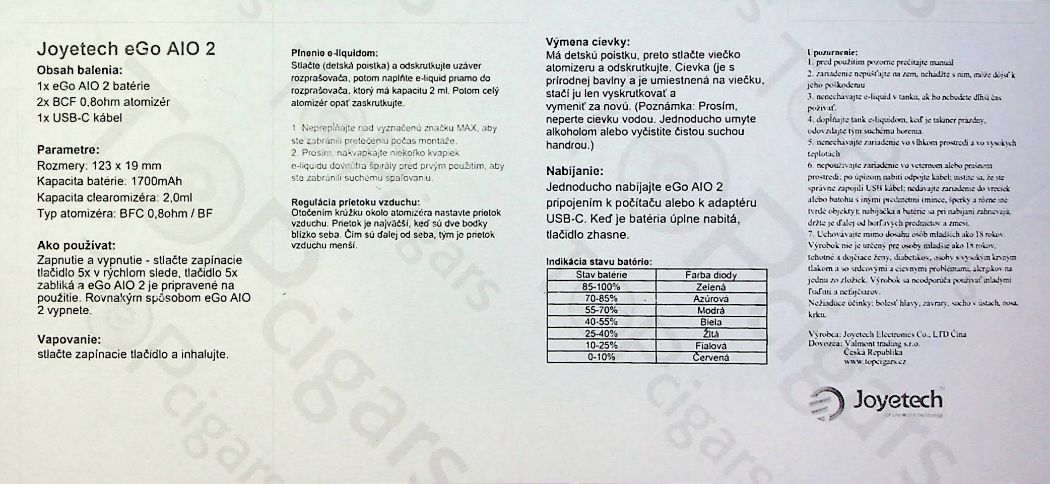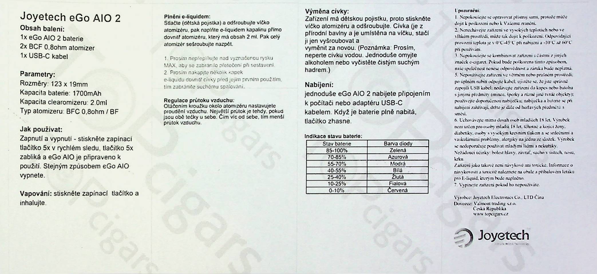 Nejslavnější elektronická cigareta typu All-in-One se po letech dočkala vytouženého nástupce. Joyetech eGo AIO 2 přichází s elegantním designem v barvě Mysterious Black a přináší řadu moderních vylepšení, která posouvají zážitek z vapingu na novou úroveň. Tato cenově výhodnější sada navíc obsahuje rovnou dva žhavicí atomizery a USB-C kabel.