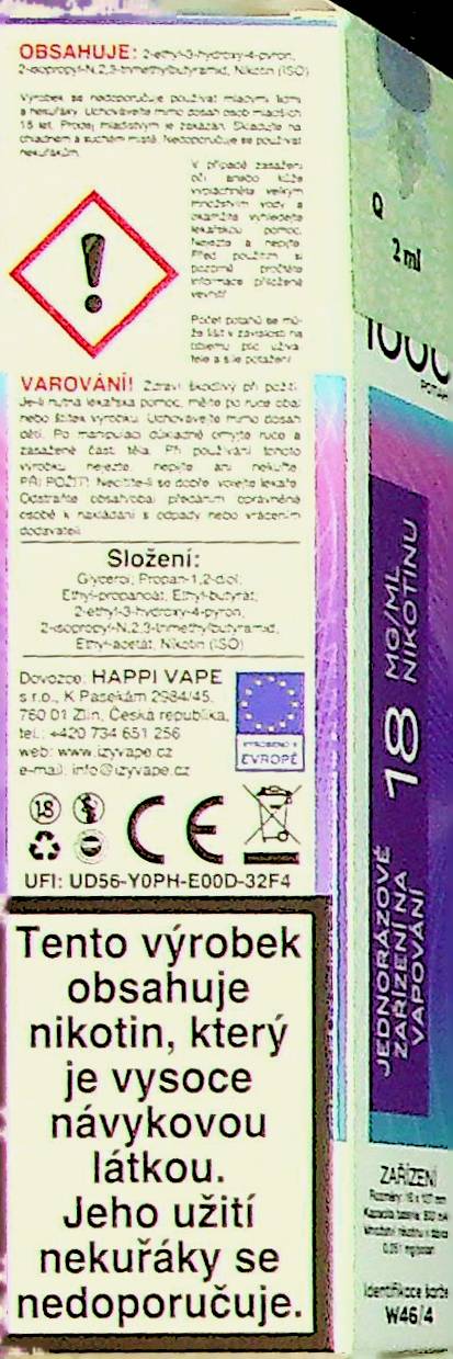 - Složení e-liquidu: PG, VG, nikotin, přírodní příchuť