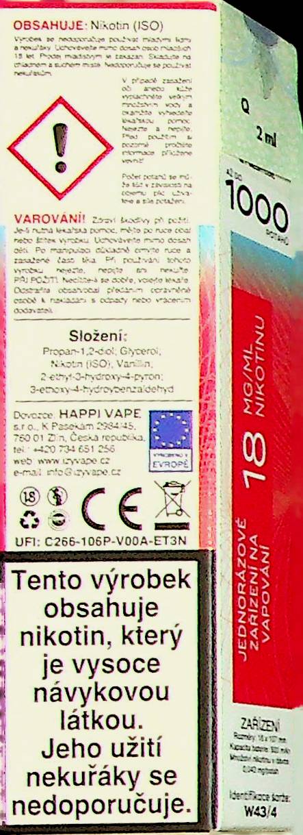 - Složení e-liquidu: PG, VG, nikotin, přírodní příchuť