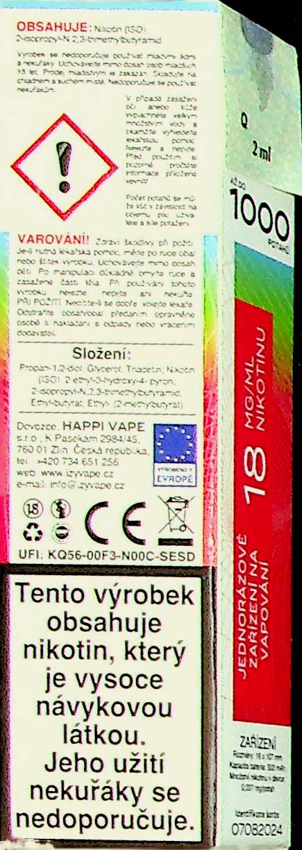 - Složení e-liquidu: PG, VG, nikotin, přírodní příchuť