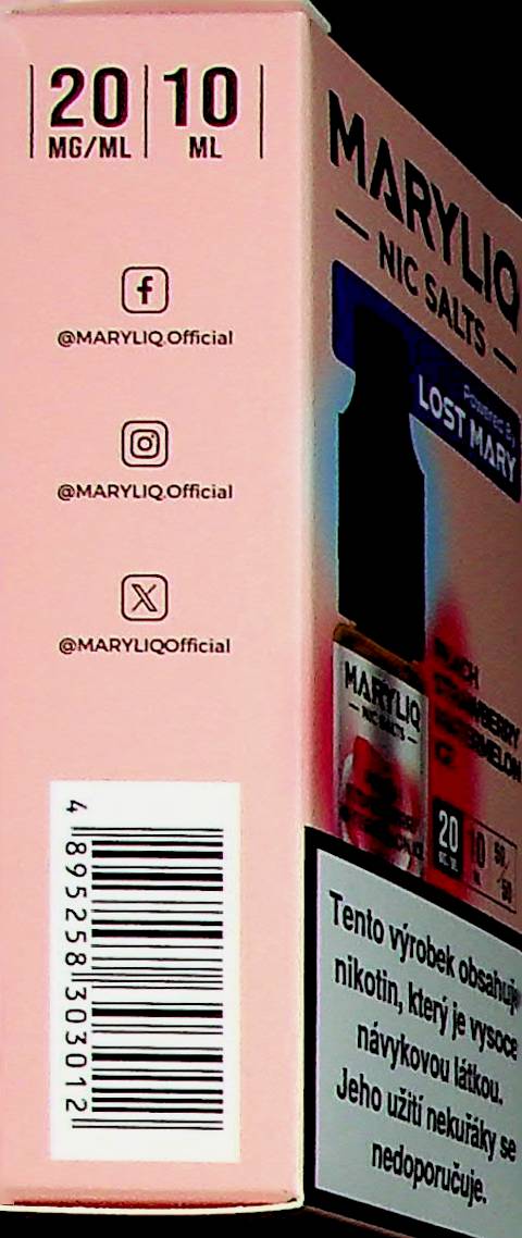 Objevte nový rozměr vapování s Mariliq Nic Salts, liquidem inspirovaným oblíbenými jednorázovými cigaretami Lost Mary. Tento speciální liquid o objemu 10 ml a s obsahem nikotinu 20 mg je navržen tak, aby poskytoval rychlejší a kvalitnější vstřebatelnost nikotinu díky použití nikotinové soli.