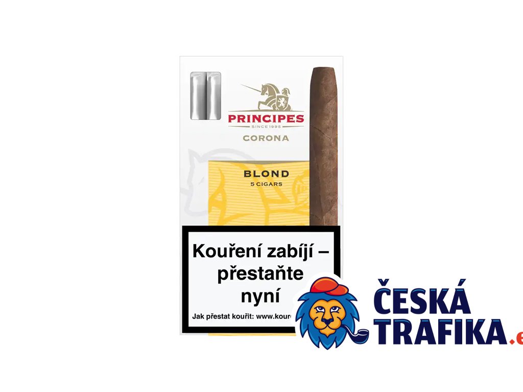 Principes Corona Blond (5 cigars) jsou doutníky ve formátu Corona v kompaktním balení po 5 kusech. Varianta Blond je doplněná o vanilkové aroma, které dodává kouření jemnější, sladce voňavý charakter.