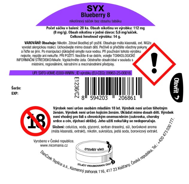 | VAROVÁNÍ: | TENTO VÝROBEK OBSAHUJE NIKOTIN A JE VYSOCE NÁVYKOVÝ |