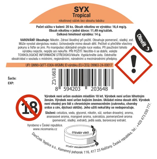 Tento výrobek obsahuje nikotin, který je vysoce návykovou látkou.