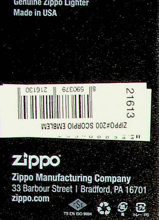 | Výrobní společnost : | Zippo Manufacturing Company |
