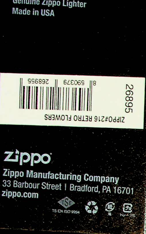 | Výrobní společnost : | Zippo Manufacturing Company |