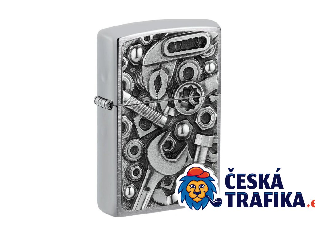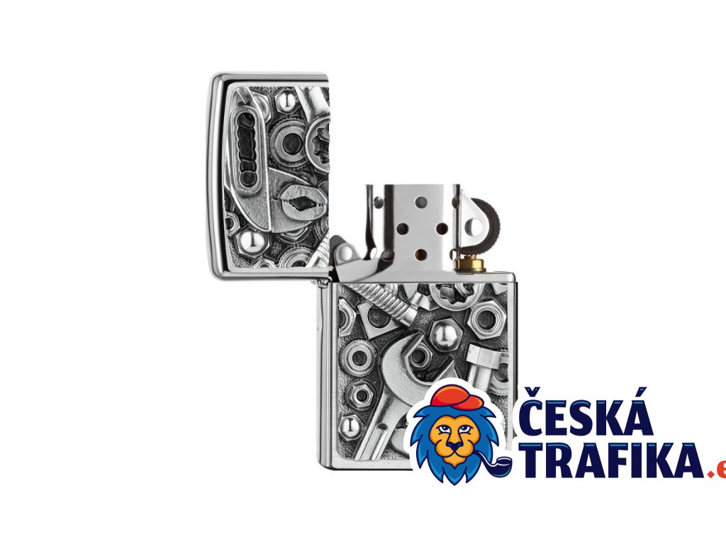 Nářadí vždy po ruce. Originální zapalovač Zippo 21979 Toolbox s výrazným 3D reliéfem nářadí na povrchu Brushed Chrome – broušený chrom je ideální pro kutily, řemeslníky, mechaniky i všechny, kteří milují vůni dílny a železa.